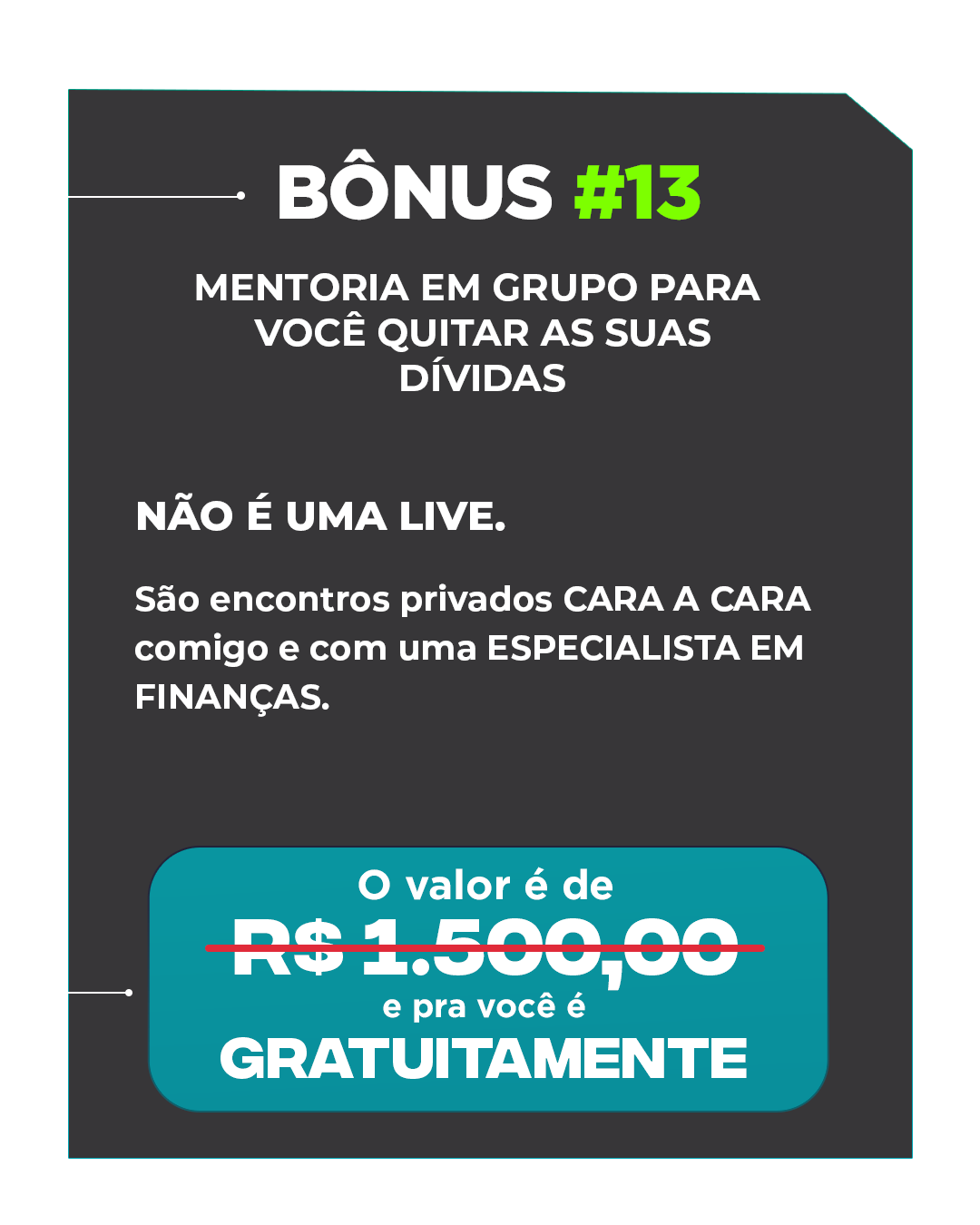 Bônus #13: MENTORIA EM GRUPO PARA VOCÊ QUITAR AS SUAS DÍVIDAS