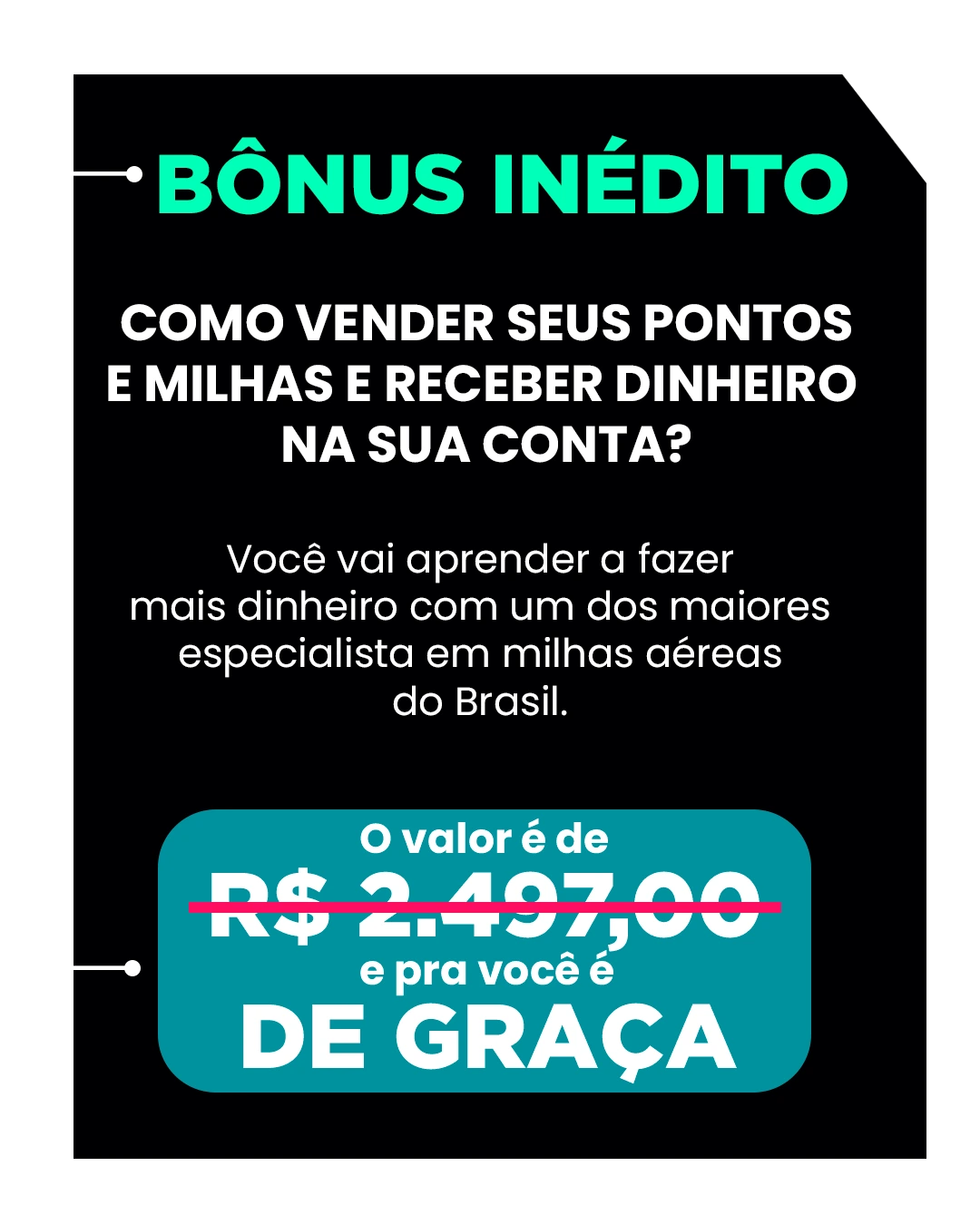 Bônus #18: BÔNUS COMO VENDER SEUS PONTOS E MILHAS E RECEBER DINHEIRO NA SUA CONTA EM 2 DIAS ÚTEIS.